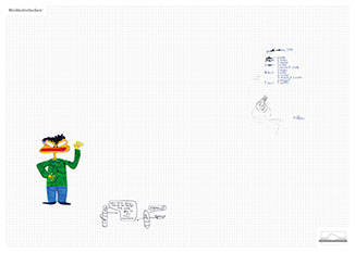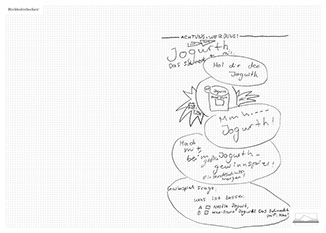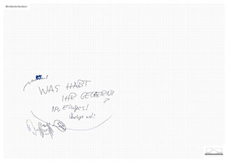 The 'Rückhaltebecken'-branded pens can be used to put random thoughts and ideas or comments/continuations on both the whiteboard and the desk pad.